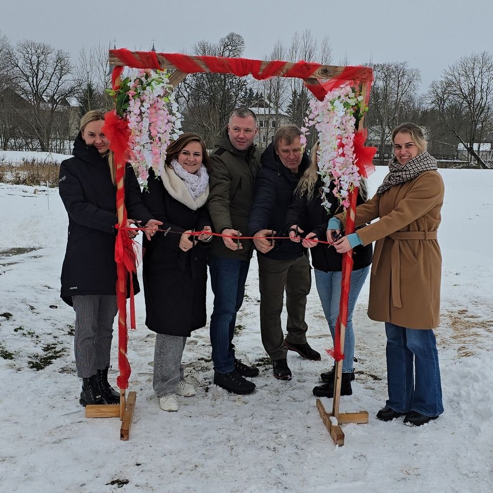 Plungės rajono savivaldybės nuotr.Žemaičių Kalvarijoje perkirpta simbolinė naujos poilsio erdvės, esančios Alksnų gatvėje, šalia Varduvos upės, atidarymo juostelė. Šis projektas – jau paskutinysis iš penkių, kurie šiemet įgyvendinti dalyvaujamojo biudžeto lėšomis.