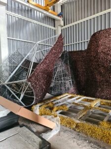 O kol kas atskiromis dalimis išardyta meška vis dar miega žiemos miegu sandėlyje. Laukia nemenki restauravimo darbai – praktiškai ją reikės padaryti iš naujo. Nesužalotos tik kelios jos dalys, o ir sandėliavimas grožio nepridėjo…