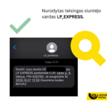 Svarbu atkreipti dėmesį, kad tikruose Lietuvos pašto ar LP EXPRESS pranešimuose klientams nerodomas konkretus telefono numeris – vietoje jo pateikiamas pavadinimas LPASTAS arba LP_EXPRESS.